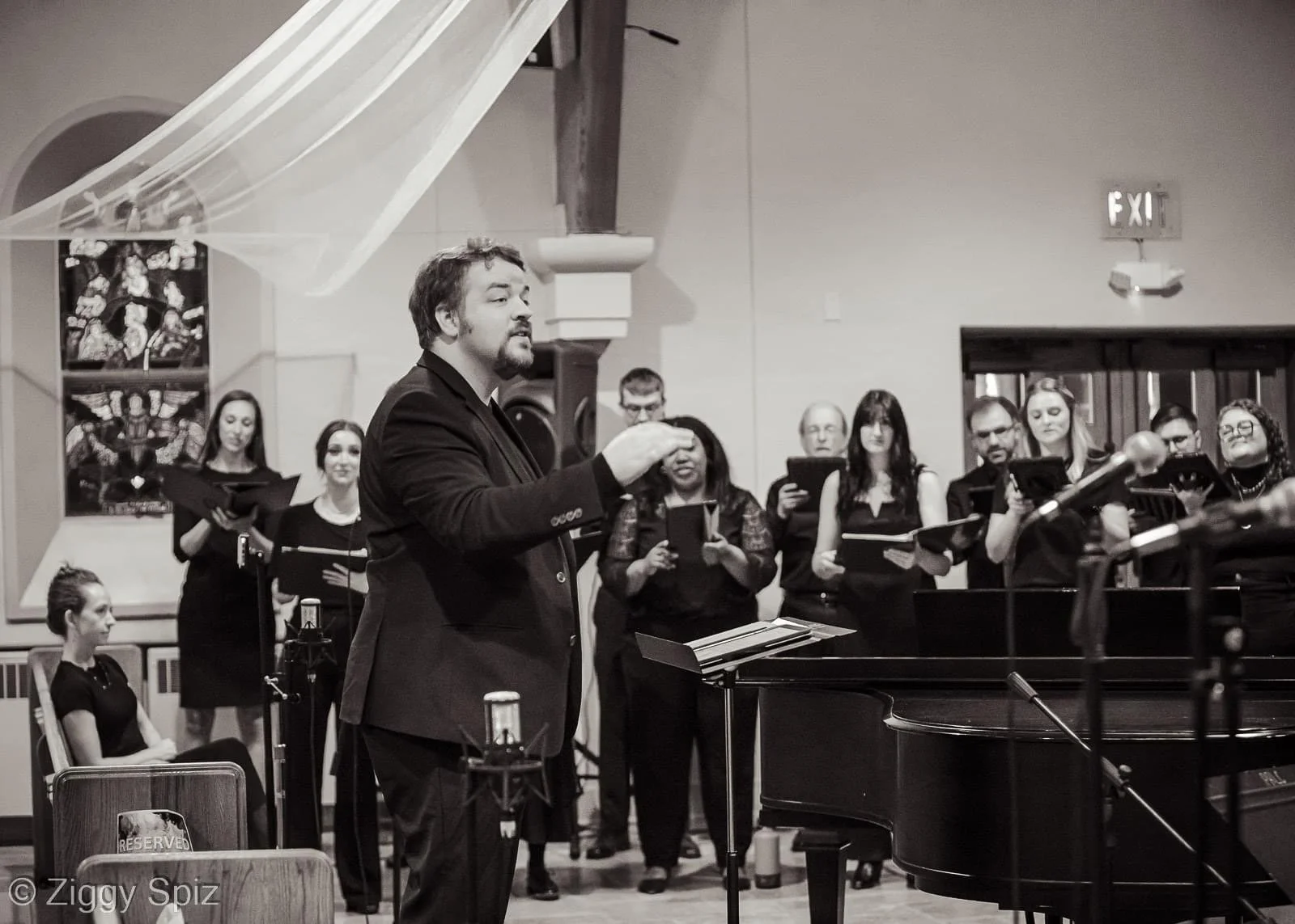 Daniel with the members of Chor Anno (Dr. Nicole Lamartine and Howard Meharg, directors) after rehearsing “Prayer for the World” in 2018.